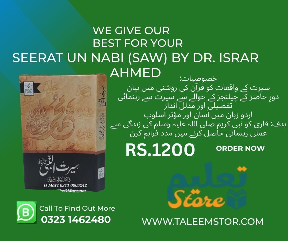 This is a book compilation of Dr. Israr Ahmed’s famous lectures on the Life of the Prophet Muhammad (SAW). Dr. Israr Ahmed presented the Prophet’s biography in a modern context, through the lens of the Quran and Sunnah, making it relevant to contemporary challenges. His explanatory and analytical style gives readers not only historical insights but also moral and reformative guidance.